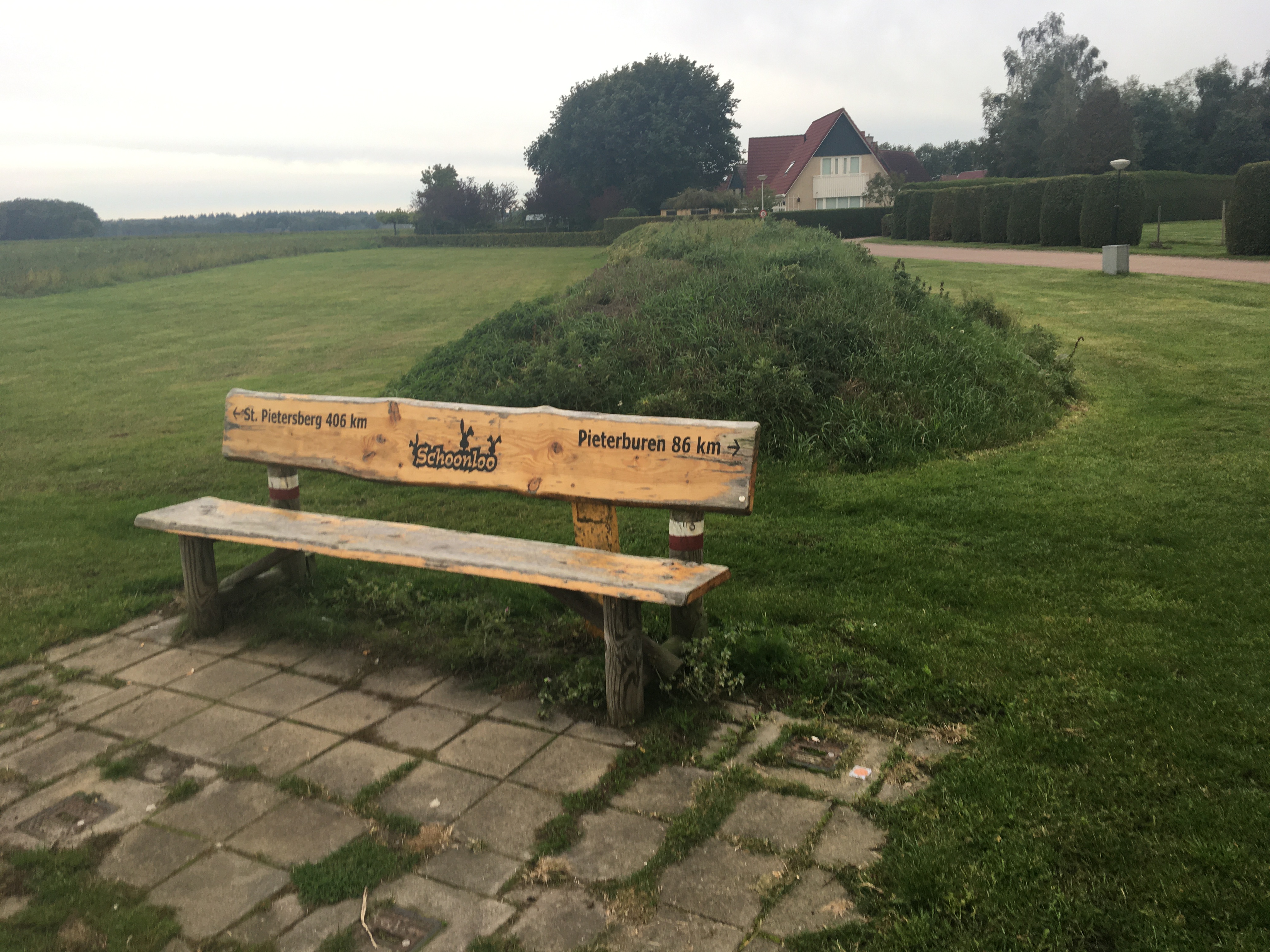 The next day it was raining like crazy and I decided to get going anyway. Early Friday morning, I left before there was any real traffic and I headed to Zuidlaren, be it a little bit off the course that the path that the map showed me. In Zuidlaren all the churches were closed and I couldnt get a stamp, I ate and brewed a coffee while I warmed and it was so cold and wet that I had to put my sleeping bag over my head and Lucy on my lap, just to feel my hands again. I walked through Zuidlaren and every now and again I would ask people if they knew this was the right direction, turns out that Zuidlaren is one big circle-jerk of paths crossing and it became apparent to me that I wasnt in France. The signs here were littered everywhere on either sides and there was no clear method to the madness. So normally theres a red line and a white line and thats means straight on. Then theres a little leg on the left if you need to turn right and a little leg on the left if you needed to take the first one right (sort of like a flag). Now some creative sons o’ bitches actually made arrows out of the red and the white line and all kinds of other shenanigans.