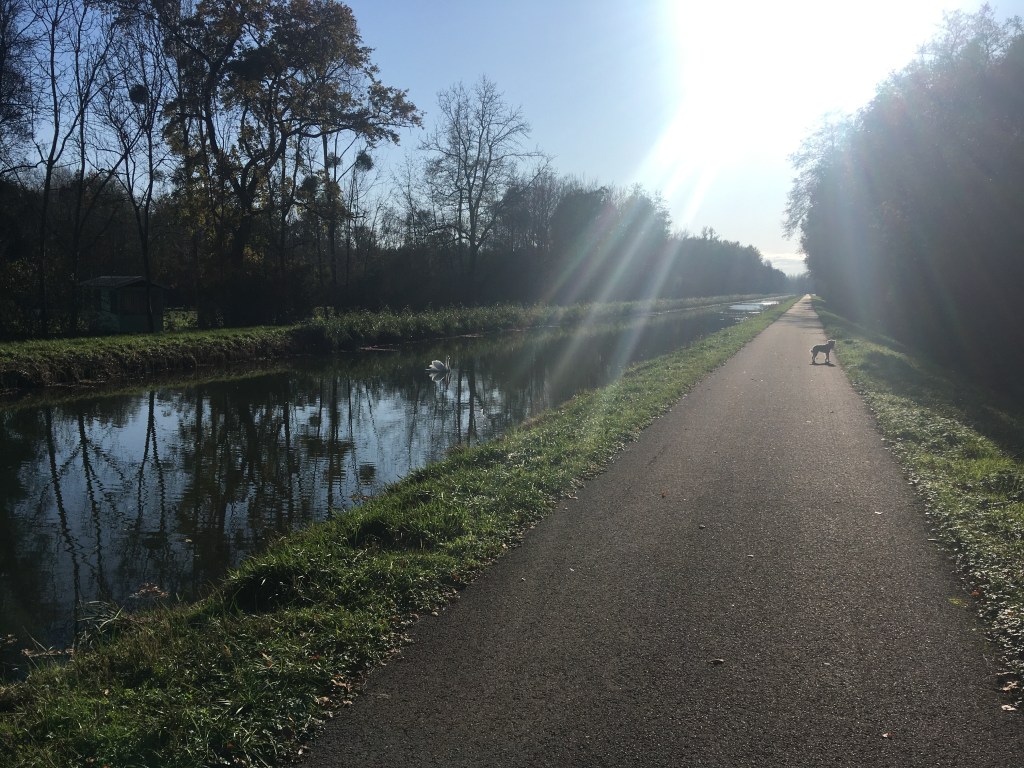 The road today was beautiful again, walking along what French people still call a canal and it was about 35-40 km walking path alongside that to Troyes. On the way I saw beautiful birds, friendly people with dogs for Lucy to play with and I even got out my speaker and listened to some music. The sun was out but I could taste the winter in the air.