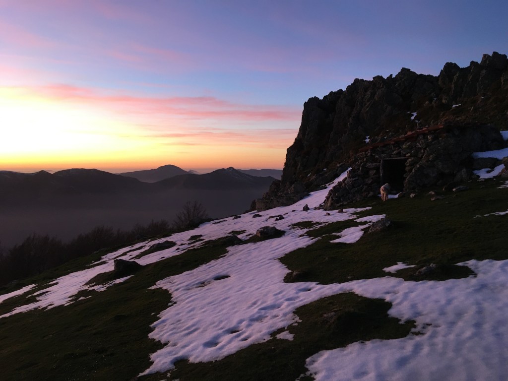 MORE SNOW, almost melted but the wind had blown all the snow in high piles and it was hard to follow the path, I sunk away in deep slush puppy and heh, I hope this isn’t going to be the whole path up to the house, on 2ndhand it didn’t really matter, since my feet were already wet anyway and as long as I kept walking it would be fine. I Found the old refuge of bricks and it seemed good, I couldn’t help but notice the small patches of grass growing on the stones and I wondered it this was due to my shit slinging efforts 2 years ago. Snow had blown in shelter so I decided to head on towards the Fountain of Roland, legendary warrior of old. As Im getting closer I could already hear the water flowing and cool! Water! First box of blessings checked, at least I could decide to camp on the mountain now if the little house proved to be closed but this shit is going to work out exactly like I hoped.